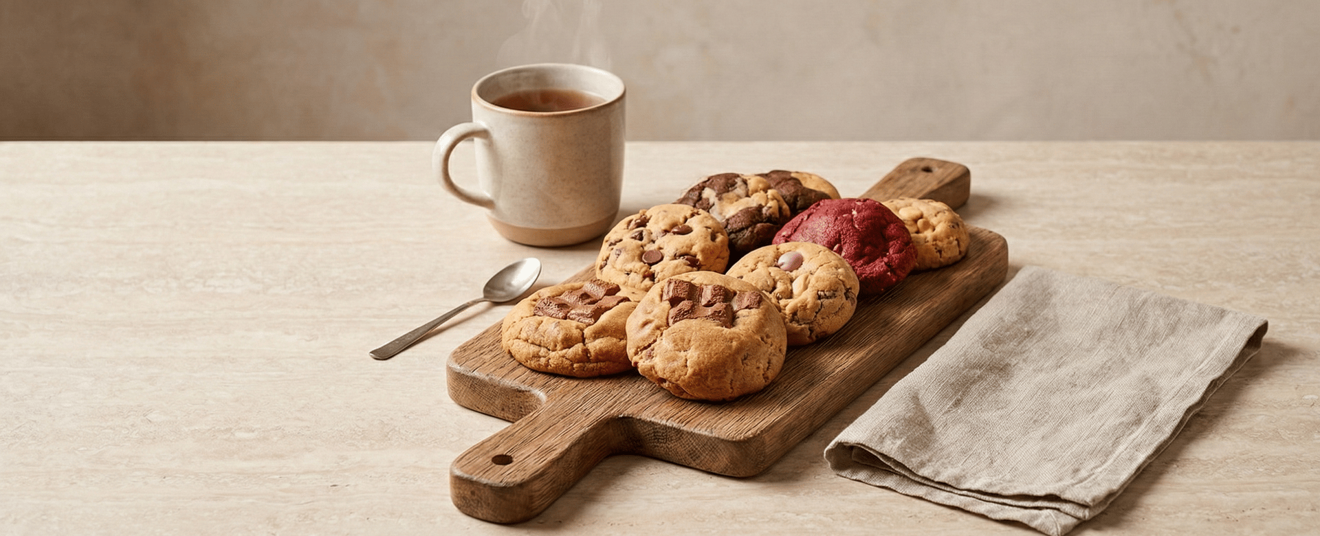 Discover our Classic Cookies – the team’s absolute favourite! With a large variety of flavours to choose from, these cookies are a must-add to every order. Soft, chewy, perfectly baked and full of flavour, they’re the ultimate treat to enjoy with your favourite cuppa.